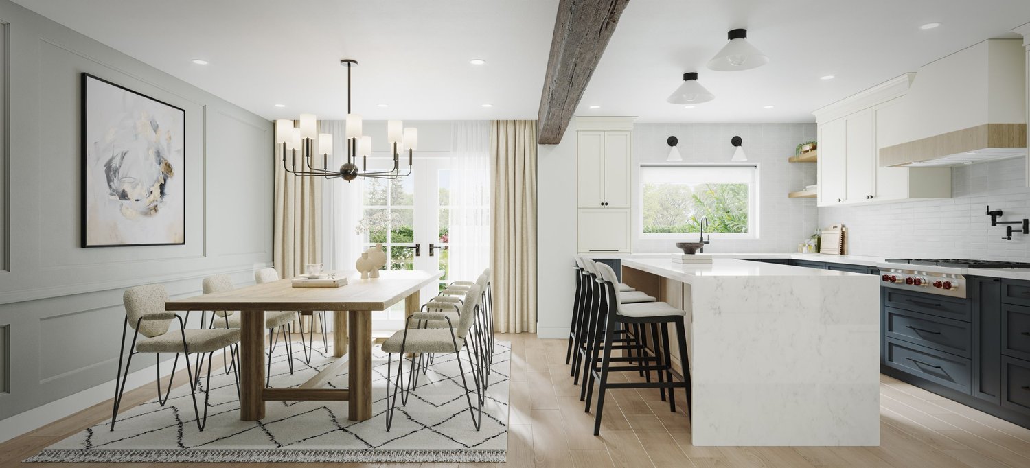 Layout and space optimization is crucial in any design project and it is the first step we take to ensure we can fulfill the clients’ need. We started by streamlining the main level’s layout, removing unnecessary elements (like walls that hindered the flow and energy), shifting the kitchen location so that it ties in seamlessly with the dining area, and embracing open spaces.
