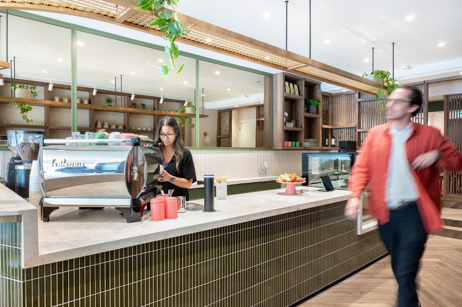Embracing a sophisticated design aesthetic, evident in the careful curation of materials, colours, and textures. The use of natural wood, premium metals, and green accents creates an atmosphere that exudes elegance without being pretentious. The sleek, contemporary design elements are tastefully combined with minimalist accents, allowing the coffee and the experience to take center stage.